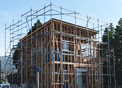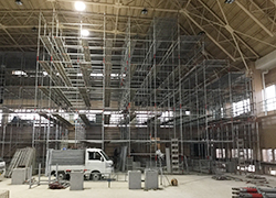建築工事の要である仮設足場。安心で安全な足場作りを社員一人一人が常に心がけています。