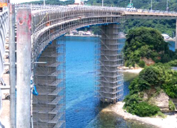 橋梁や橋脚など土木構造物には枠組足場のW1200が使用される。